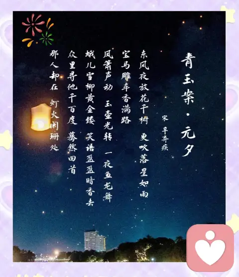 早上突然想起这首词来!是我非常喜欢的一首诗,彼得老先生的歌曲版本也是我最喜欢的一个版本,意境和声音完美融合。不到晚年,都不能回头发现,“蓦然回首,那人却在,灯火阑珊处”。那人究竟是谁呢?是他还是“我”?令人生出无穷遐想。