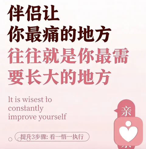 说“伴侣让你痛的点,是你要成长的点”,先要讲清楚一件事:不是所有痛,都要靠“修自己”来解决。我在咨询里会特别区分两类痛: