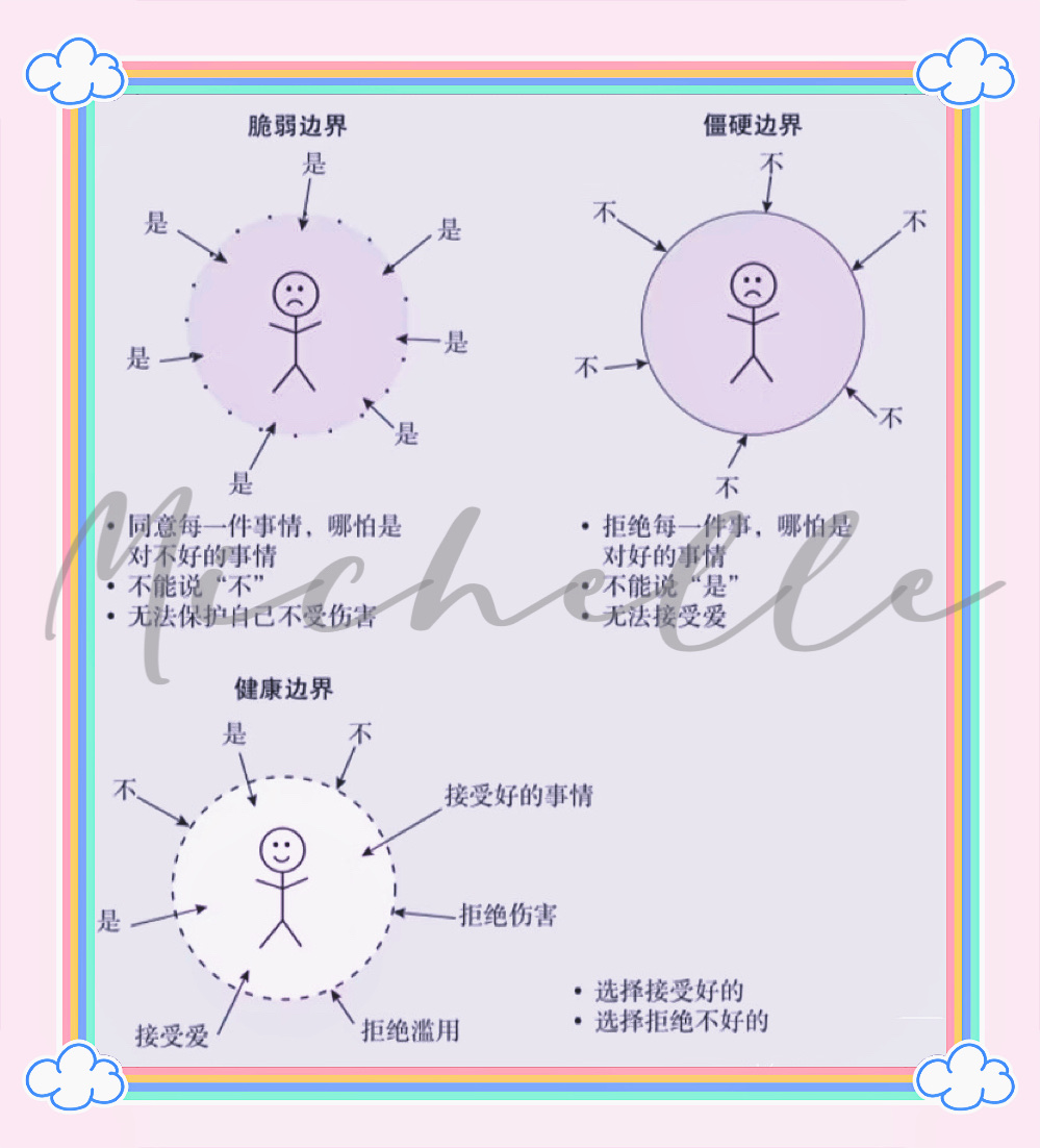 4. 自我关怀:强调建立边界不是自私,而是自我关怀的必要形式。只有当我们照顾好自己的需求时,才有能力去真正地爱和支持他人。