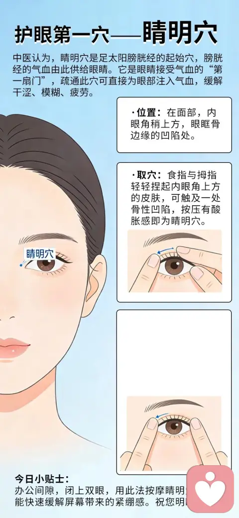 【护眼第一要穴:睛明穴】