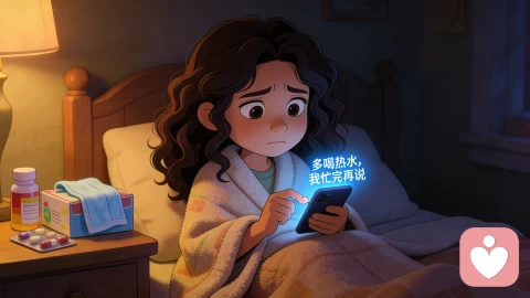 那一句“忙完再说”,像一根冰冷的针,瞬间扎破了她鼓起的勇气。她咬着牙自己翻箱倒柜找退烧药,用凉毛巾敷额头,折腾了两个小时把体温压下去,全程没再发一条消息。