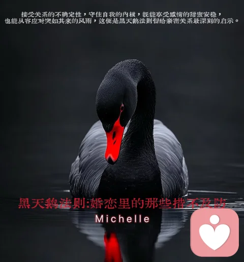 读懂黑天鹅法则,便不会在婚恋的意外中崩溃失措。接受关系的不确定性,守住自我的内核,既能享受感情的甜蜜安稳,也能从容应对突如其来的风雨,这便是黑天鹅法则留给亲密关系最深刻的启示。 💭