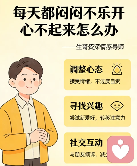 最后,别把情绪憋在心里,学会找到宣泄的出口。长期把闷闷不乐藏在心里,只会让情绪越积越重,不妨找信任的朋友聊聊天,把心里的委屈、烦恼说出来,不用刻意伪装坚强,倾诉本身就是一种治愈;也可以把心情写下来,用文字梳理情绪,把心里的沉闷全部释放;或是通过运动、散步、画画等方式,让情绪找到出口,心里的垃圾倒干净了,才能装下快乐。