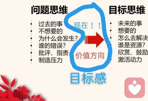 三、引入目标感(激发自己朝着本属于将来的目标、但过程中体现出在当下时时刻刻的目标价值感),一例子,体验目标与目标感的本质区别,并通过对两张图文字的增添和标记让价值方向更加直观和具体。
